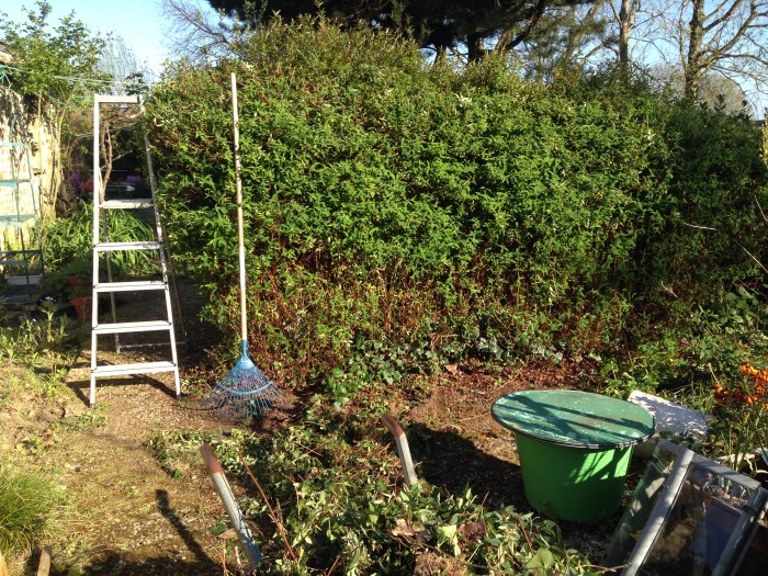Et pendant la cuisson, j’ai bien taillé ma haie. J’ai avancé la remise en état printanière de mon domaine.